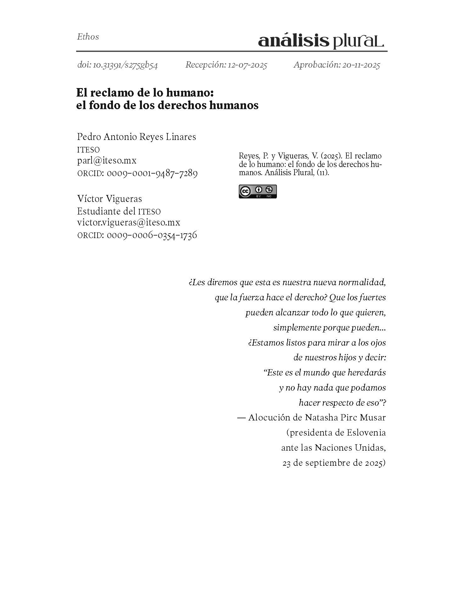 Análisis Plural. Revista digital continua, abierta e infinita, de periodicidad cuatrimestral, enfocada en el análisis de coyuntura a nivel local, nacional e internacional, desde múltiples perspectivas que abarcan lo social, político, económico, jurídico, ambiental, de género, entre otras. Actualmente, la revista es editada por el Centro Interdisciplinario para la Formación y Vinculación Social (Cifovis), el Departamento de Estudios Sociopolíticos y Jurídicos (DESOJ) y el Departamento de Formación Humana (DFH) del Instituto Tecnológico y de Estudios Superiores de Occidente (ITESO, Universidad Jesuita de Guadalajara), y solo recibe y publica colaboraciones entregadas previa invitación expresa del coordinador de número en turno. ISSN: 2954-5188